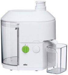 The Braun Multiquick juicer comes together with a 1 .25L jug including a foam separator . So you can enjoy your fresh juice without the foam on top . The jug has been designed to ensure no leakage when pouring . 2 speeds . With 2 speeds, you can adapt the power to process both soft and hard vegetables . Anti splash stainless steel spout .