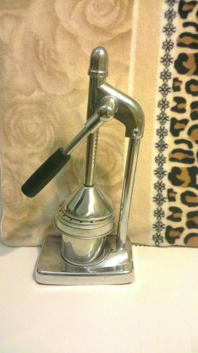 Пресс для цитрусовых и гранатов, благодаря которому, всего за несколько минут, из одного плода граната можно получить около 200-250 мл . сока . Главное правильно поставить пресс, на твёрдую, устойчивую поверхность, так как при его работе образуется достаточно большое давление .