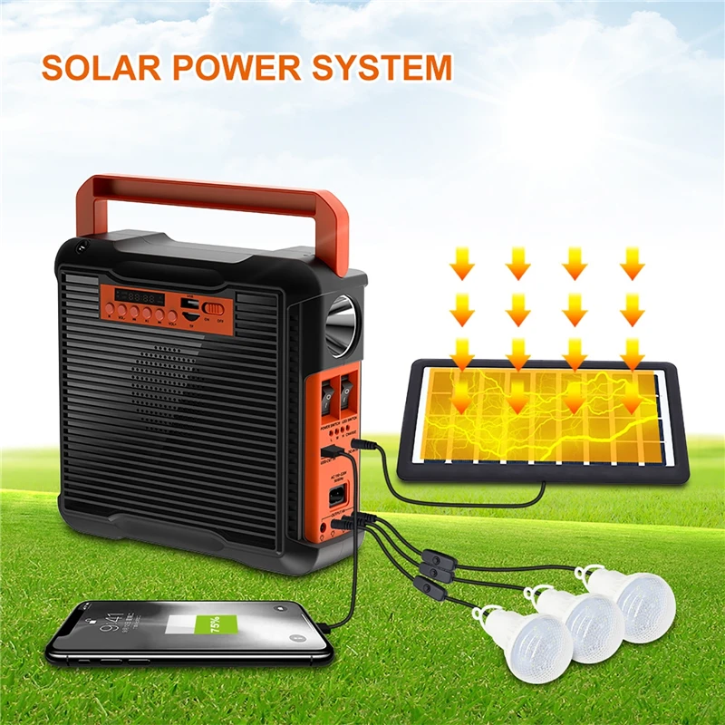 EOCpNodLjVHere you can buy Solar Light Power Panel Generator Kit Home System 3 LED Bulb Highlight Energy Saving ing with FM Radio with free delivery to your post office.