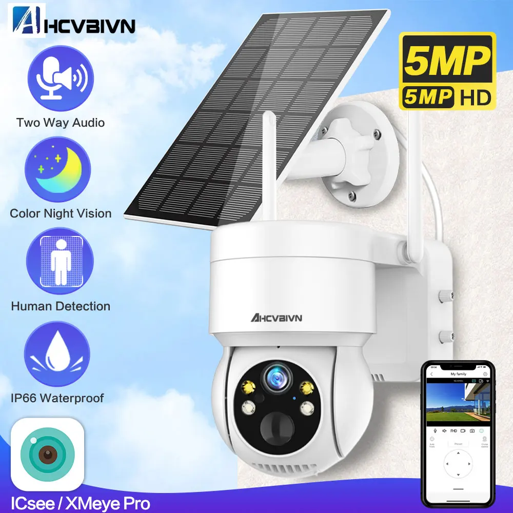 bKpHNPoJpbHere you can buy Solar Panel Wifi Camera HD 5MP Outdoor PTZ With Rechargeable Battery PIR Motion Detection Audio 100% Wireless Security IP Camera with free delivery to your post office.