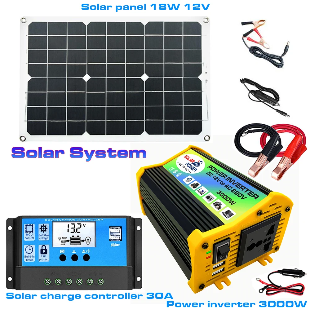 Solar Power Generation System Dual USB 18W Panel+300W Inverter+30A Charge Controller DC 12V / 24V Auto Intelligent Conversion - Купить с бесплатной доставкой
