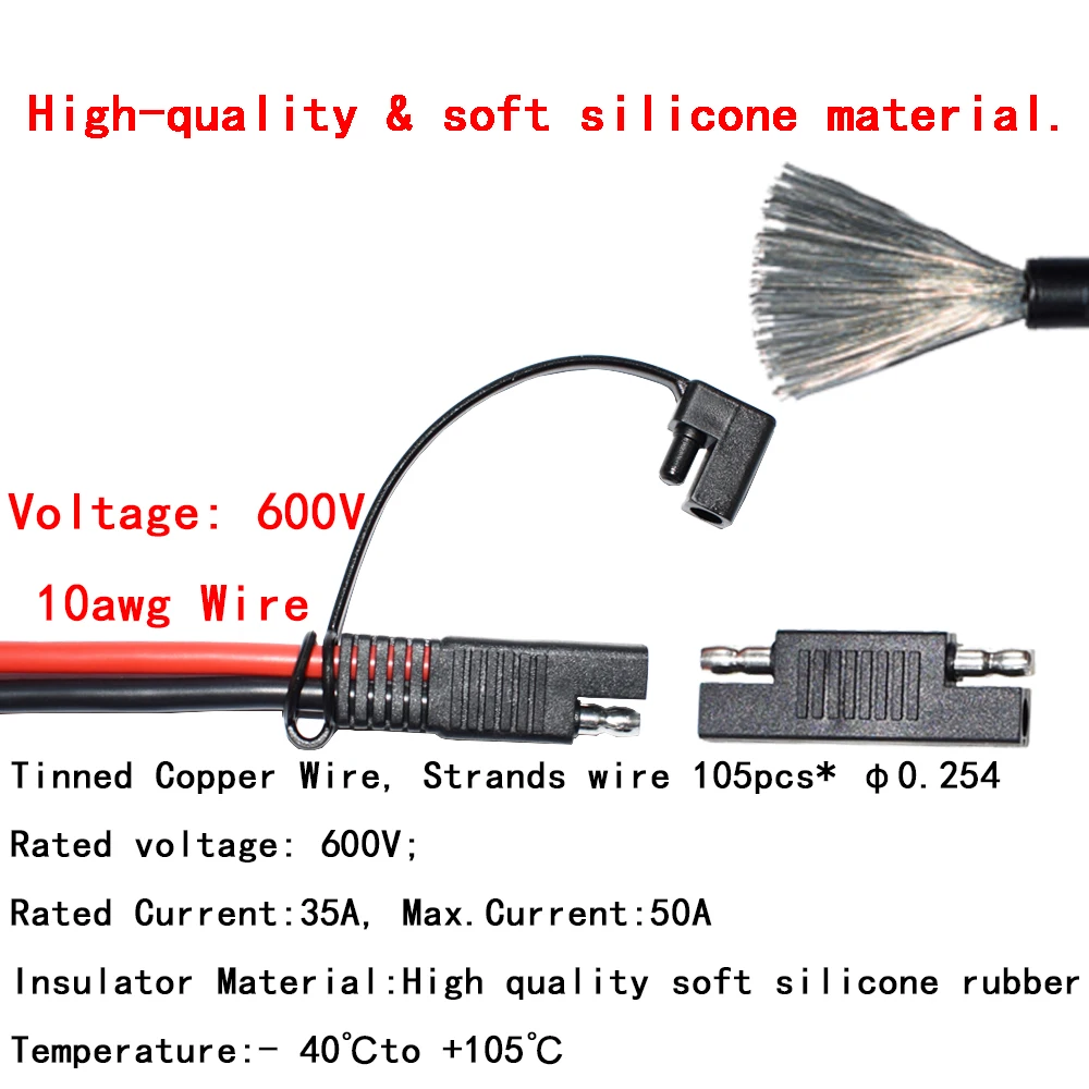Solar to SAE Connectors Adapter 10AWG Cable Connector with SAE to SAE Polarity Reverse Connectors for RV Solar Panels 60cm/2.0ft - Купить с бесплатной доставкой