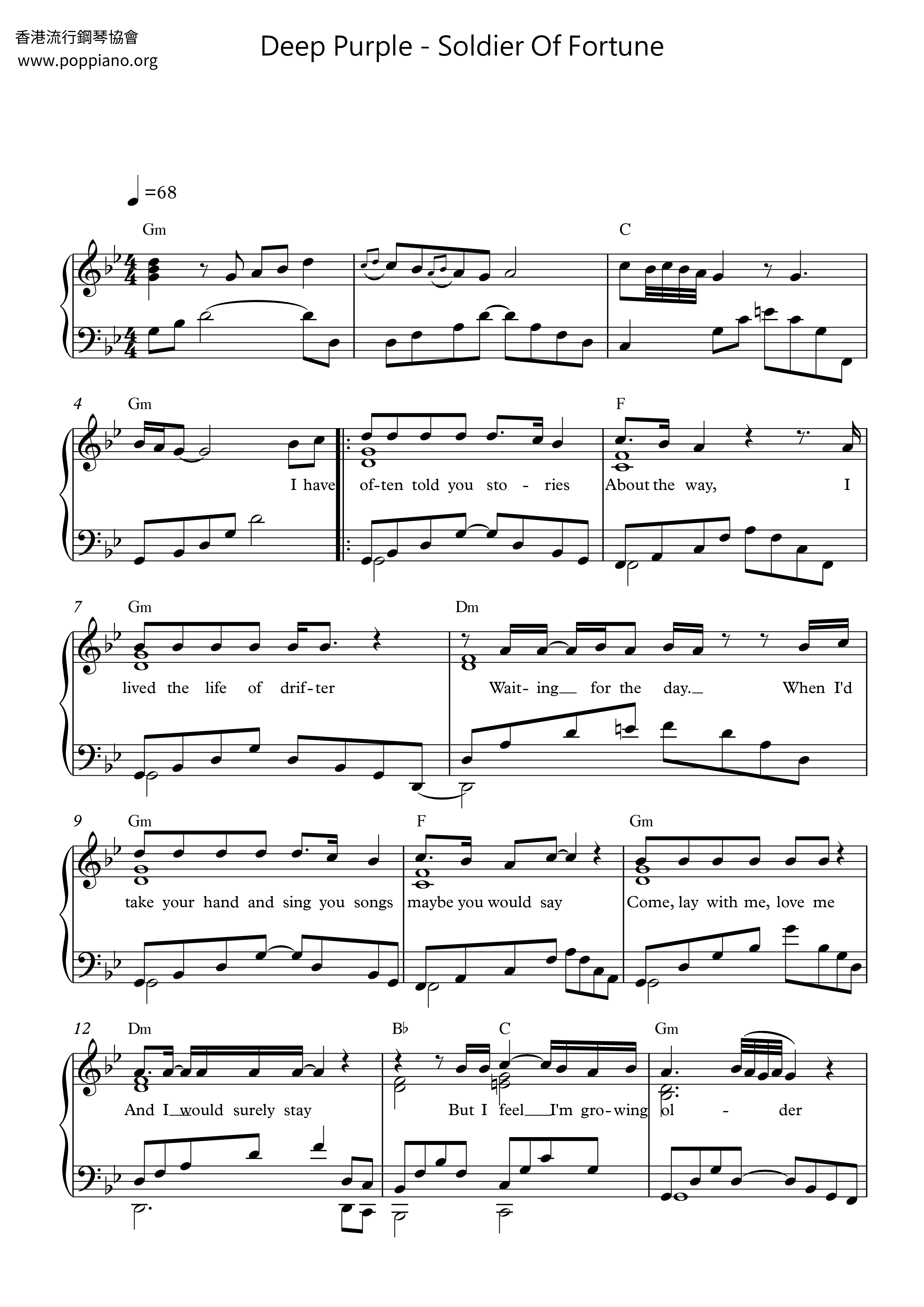 Deep Purple - Soldier of Fortune (Blackmore/Coverdale) "Stormbringer" (1974) [Intro] Gm Dm C Gm [Verse] Gm I have often told you stories F About the way Gm I lived the life of a drifter Dm w