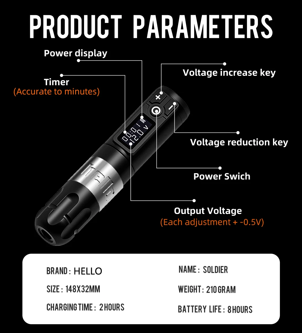 bfdrlbbIGHere you can buy Soldier Professional Wireless Tattoo Machine Pen 1800 mA Ambitione Battery With Digital LED Portable Power Display For Body Art with free delivery to your post office.