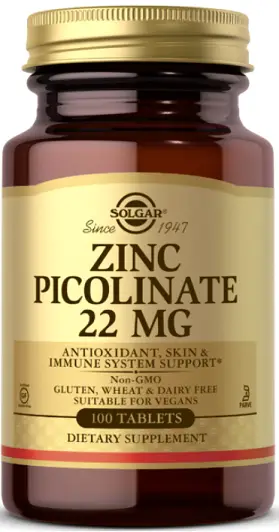 СОЛГАР / SOLGAR Цинк Пиколинат 22 мг таблетки описание: Този продуктът с марка СОЛГАР представлява хранителна добавка, съдържаща Zinc picolinate . Цинкът представлява микроелемент, изпълняващ редица функции в организма .