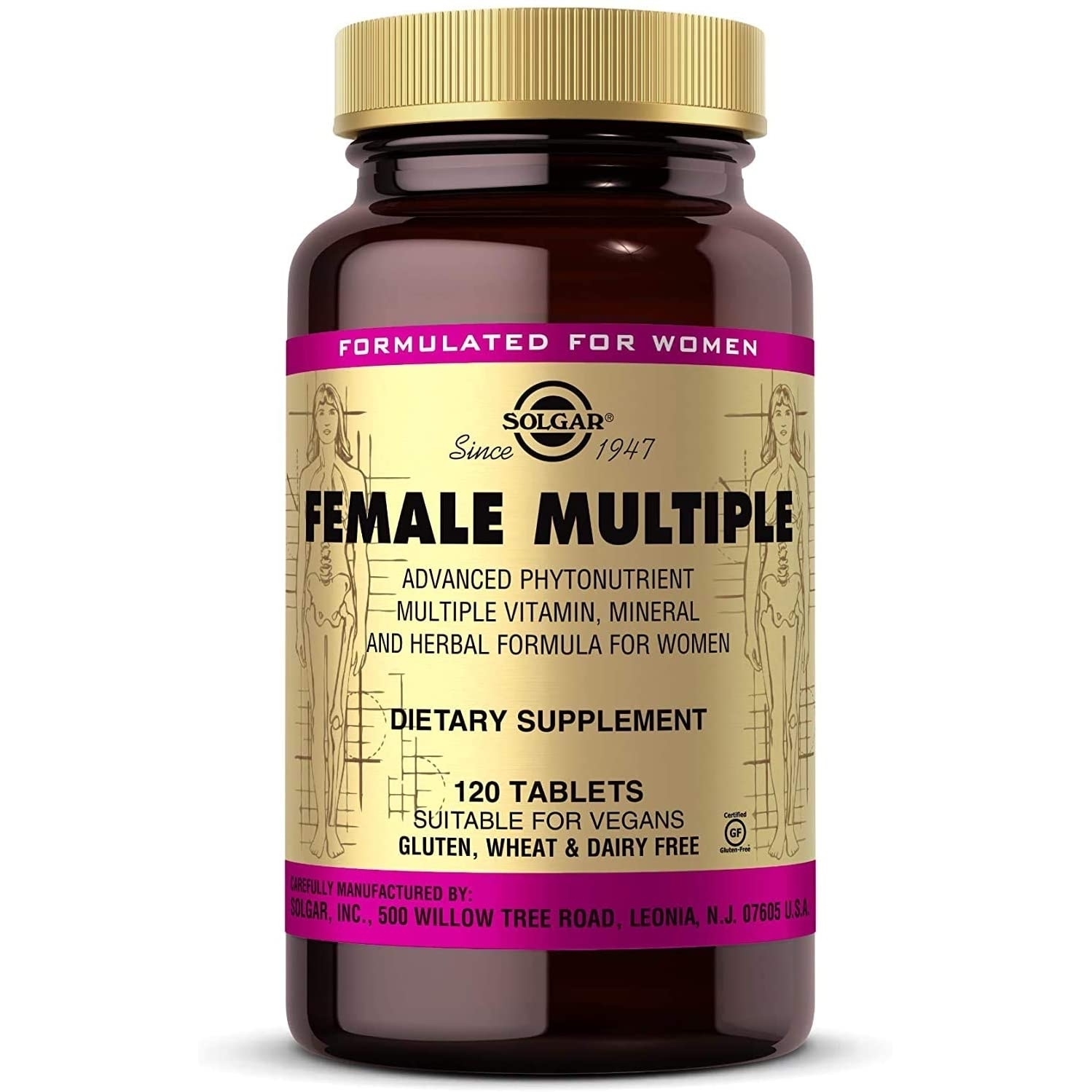 Vegan Gluten-Free Dairy-Free Kosher Solgar® Herbal Female Complex is a specialized advanced herbal combination formula for maintaining the normal health and well-being of the female .* Available In 50 Capsules Find in Store Buy Online Suggested Use Supplement Facts Additional Product Information The Gold Standard Since 1947
