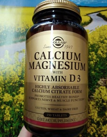 Инструкция по применению Кальций-Магний-Витамин Д3 Solgar/Солгар таблетки 150шт Краткое описание Кальций Магний с витамином D3 - содержит легко усваиваемую в организме цитратную (хелатную) форму кальция и магния . Кальций и магний в составе комплекса содержатся в оптимальном соотношении 2:1 .