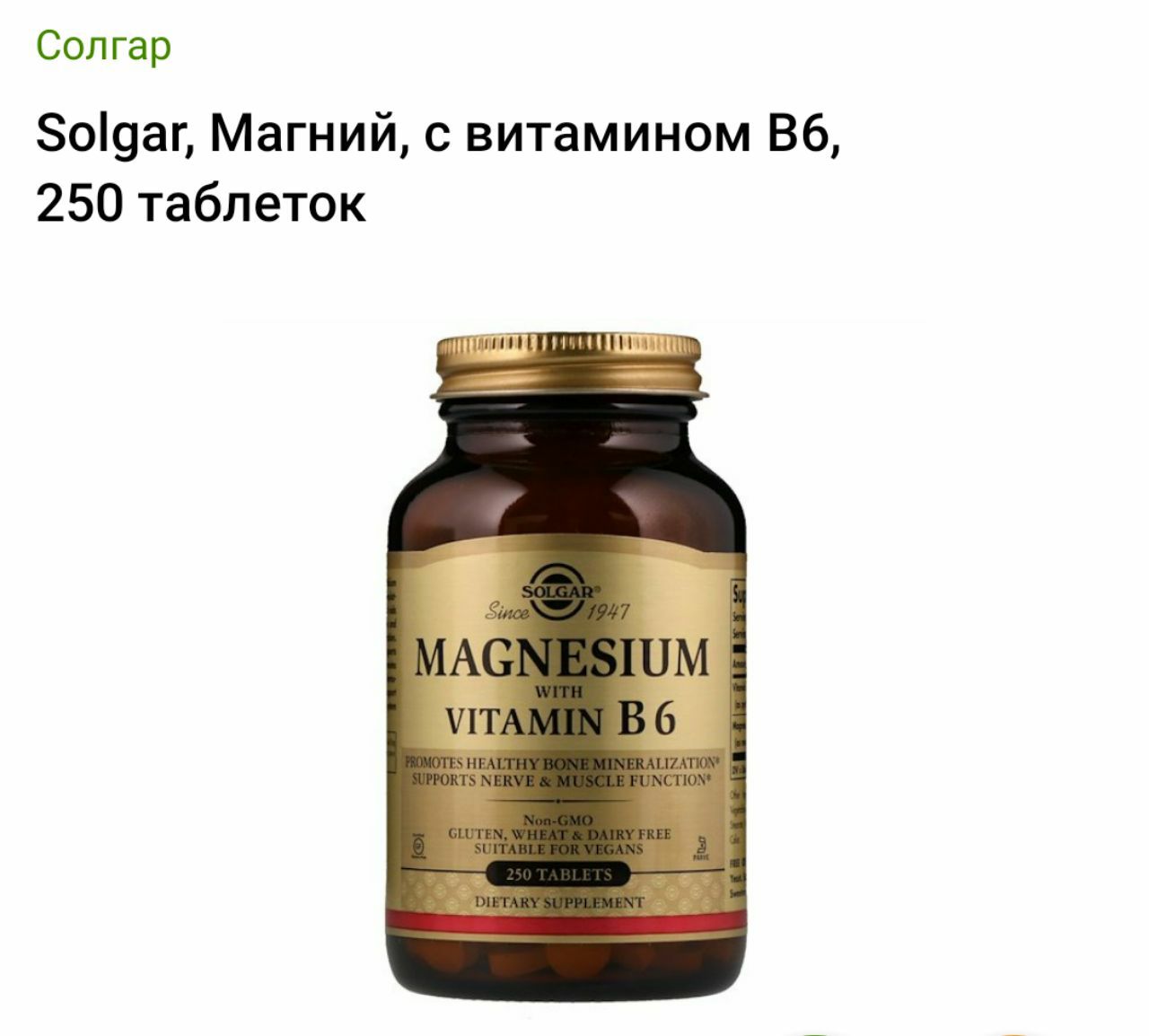 Перед покупкой Solgar , Магний, с витамином В 6 , 250 таблеток, обязательно почитайте отзывы и изучите описание продукта!