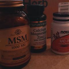 Метилсульфонилметан (МСМ, MSM) - это, собственно говоря, сера . Обладает выраженным противовоспалительным действием, применяется для лечения и укрепления суставов и связок и снятия болевых синдромов . Участвует в синтезе антиоксидантных веществ . При этом в комплексе глюкозамин и хондроитин усиливают действие МСМ, работая синергетически .