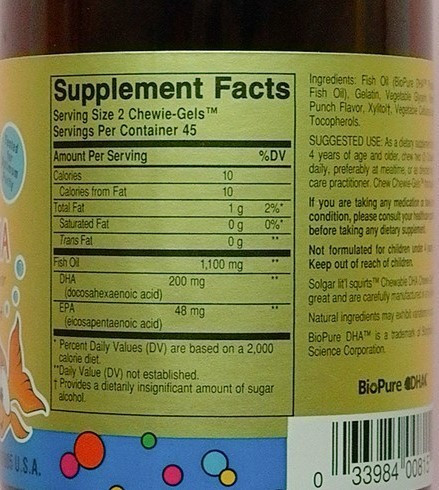 Жевательные капсулы для детей «Золотые рыбки Солгар» рекомендуются в качестве биологически активной добавки к пище - дополнительного источника полиненасыщенных жирных кислот Омега-3 (эйкозопентаеновая и докозагексаеновая кислота) и витамина Е .