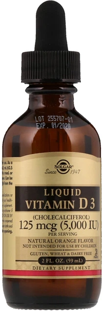 Витамин Д3 Солгар 125 мкг 5000 МЕ - однокомпонентный биокомплекс, помогающий восполнить дефицит холекальциферола . При использовании безглютенового сертифицированного препарата укрепляются зубы, кости, нормализуется работа иммунитета . Состав и форма выпуска В одной капсуле - 125 мкг ( 5000 МЕ) витамина D3 (в виде холекальциферола) .