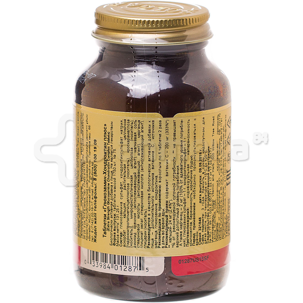 Солгар Глюкозамин Хондроитин - это биологически активная добавка, которая восполняет недостаток витаминов и необходимых веществ . Применяется в процессе лечения суставных патологий .