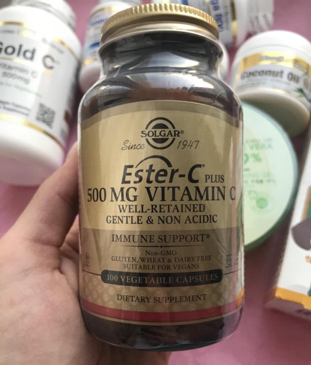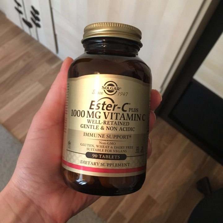 10 Эстер С плюс витамин C ( Solgar Ester C Plus)- Solgar (США) Эстер С = 4х кратное действие обычного витамина С Эстэр C = 4 х кратное действие обычного витамина С . Эстер-С -самый ценный витамин С, растворимый как в воде, так и в жирах . Мощный антиоксидант, защищает от свободных радикалов . Особенно велика потребность в витамине С у курящих .