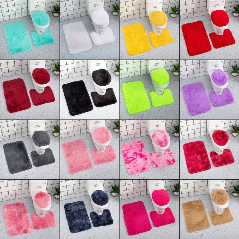 HahsrNqwrcHere you can buy Solid Color Bath Rug Set Soft Plush 3 Piece Non Slip Absorbent Bathroom Mat,U Shaped Contour Rug & Toilet Lid Cover Washable with free delivery to your post office.