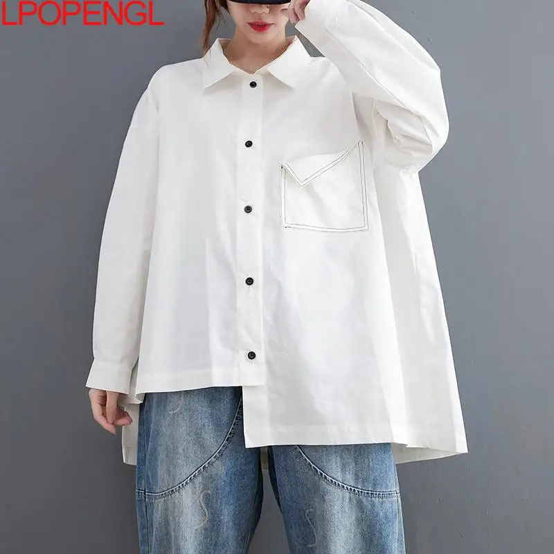 SPNMZYtGLooked for Solid Color Casual Blouse Women Oversize Elegant Tops Loose Long Sleeve Cotton Button Asymmetrical Spring Single Breasted Cardig for a long time, but could not find it? Bring to your attention Solid Color Casual Blouse Women Oversize Elegant Tops Loose Long Sleeve Cotton Button Asymmetrical Spring Single Breasted Cardig with the best price!