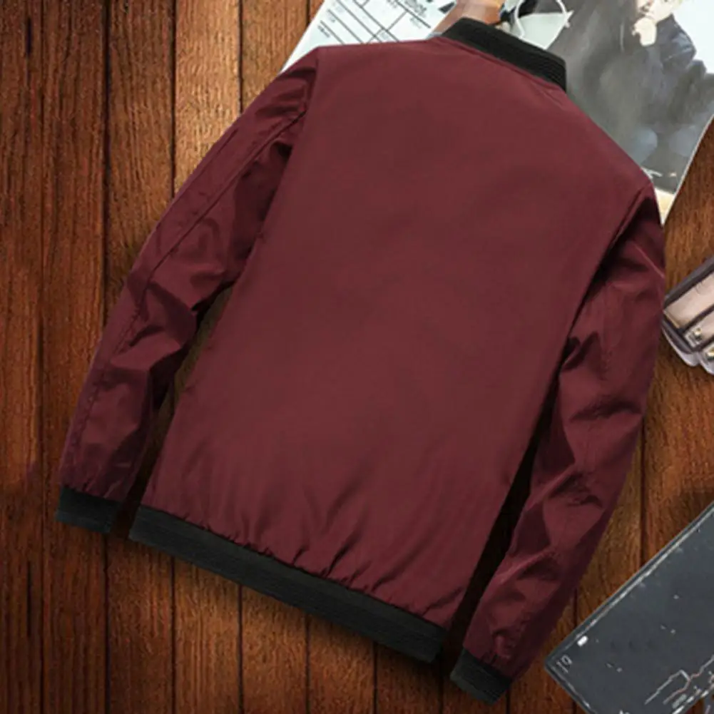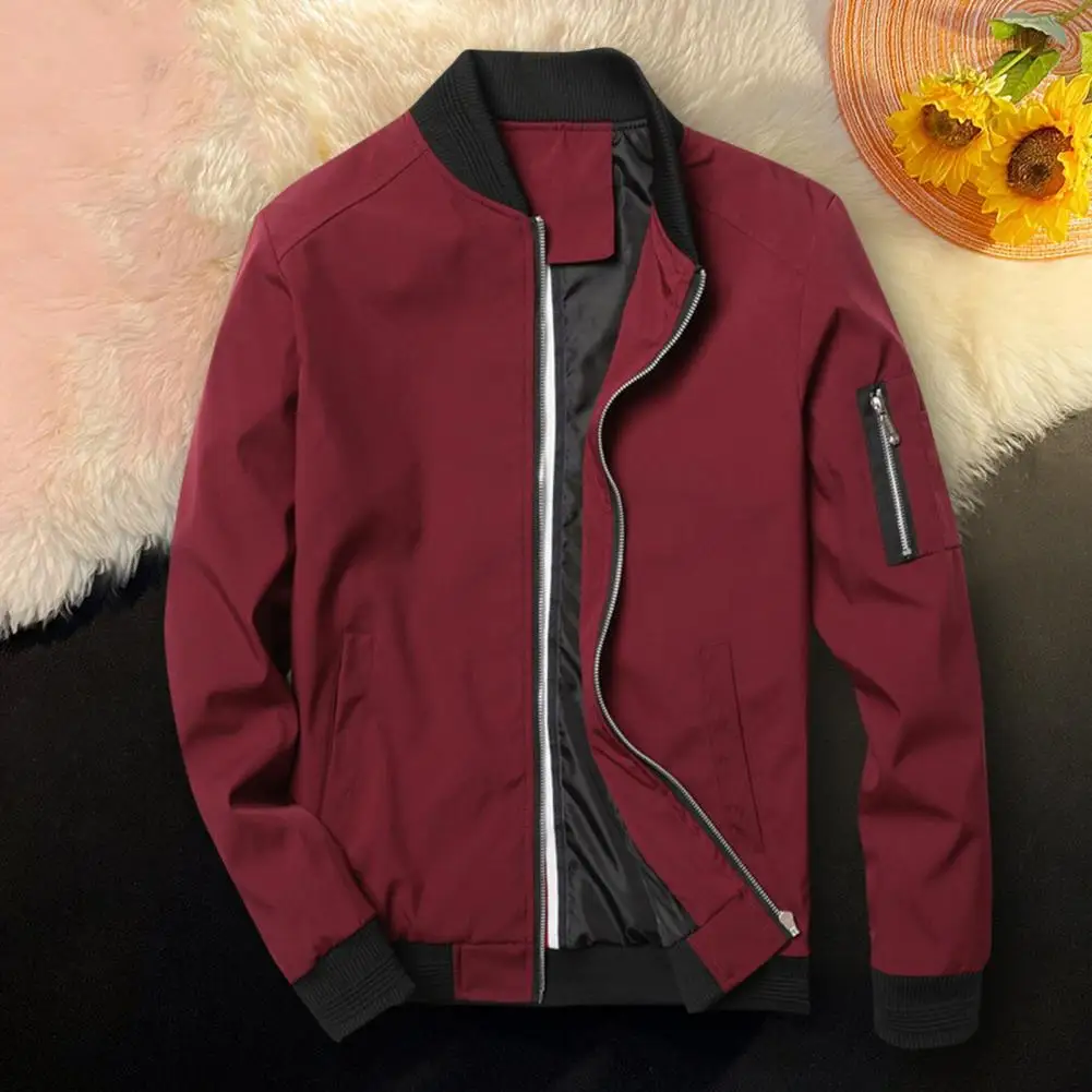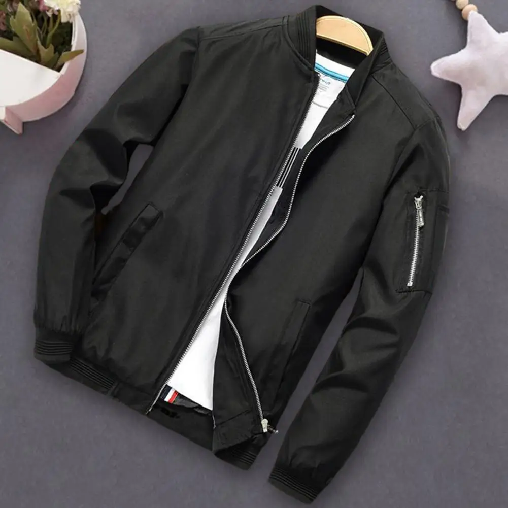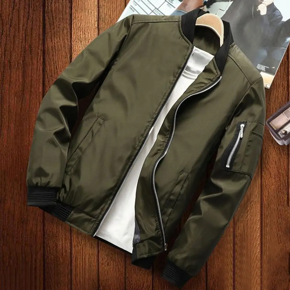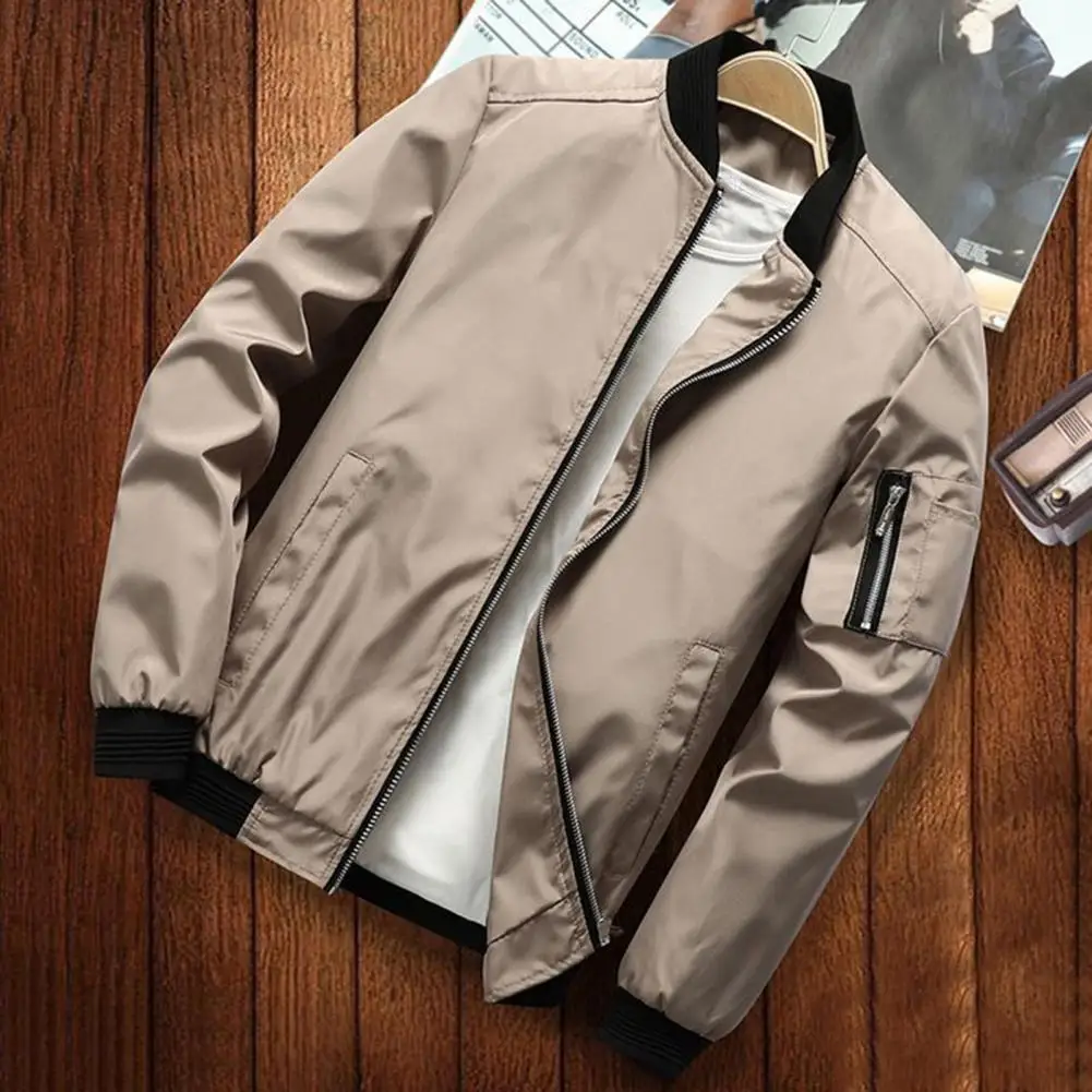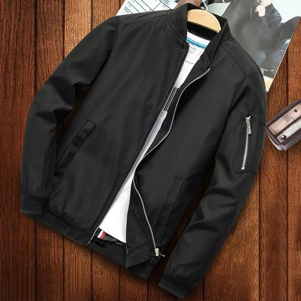 Solid Color Men Jacket Smooth Thin Solid Color Men's Fall Jacket with Stand Collar Zip Up Closure Elastic Cuffs Stylish for Men - Купить с бесплатной доставкой