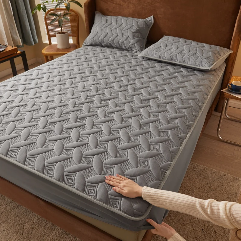 PIznQvlMkДолго искали Solid Color Quilted Fitted Sheet Thickened Mattress Cover with All-around Elastic Rubber Band Bedsheet Single Queen King Size, но не могли найти? Предоставляем вашему вниманию Solid Color Quilted Fitted Sheet Thickened Mattress Cover with All-around Elastic Rubber Band Bedsheet Single Queen King Size по лучшей цене на рынке!