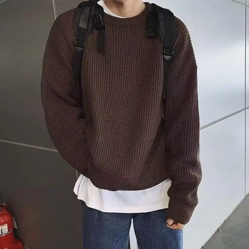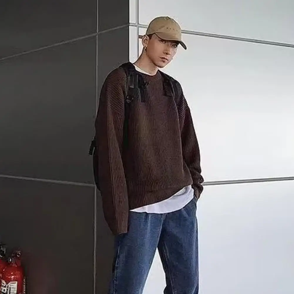 VVlsqwHUuAHere you can buy Solid Color Round Neck Sweater Vintage Knitted Sweater Men's Loose Solid Color Pullover for Fall/winter Elastic Mid Length Plus with free delivery to your post office.