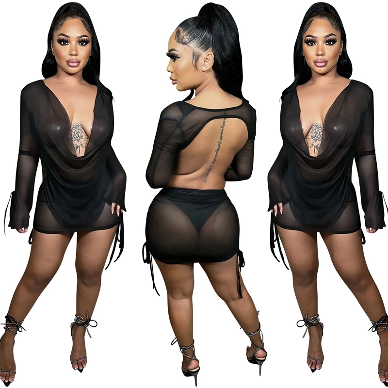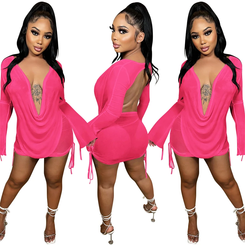 «Solid Sheer Mesh Backless Mini Dresses for Women 2022 Summer Sexy Club Outfits Deep V Neck Long Sleeve Drawstring Bodycon Skirt» по лучшей цене на рынке! Всего за 26$ (2470рублей)