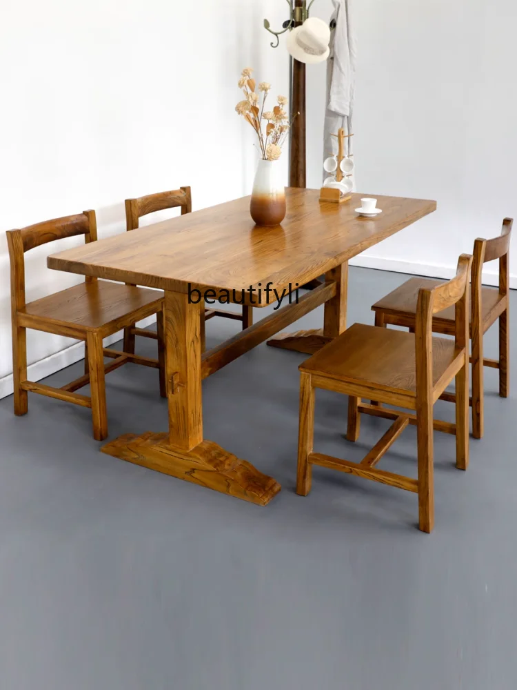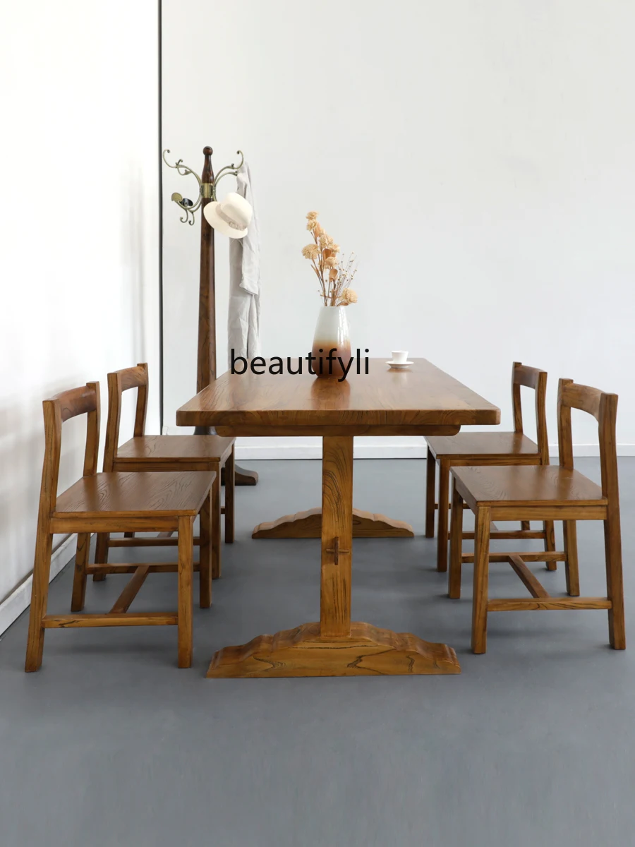 eepYVzhzJsHere you can buy Solid Wood Dining Table Rectangular Small Apartment Assembly Log Furniture Modern Minimalist Elm Dining Table Chair Combination with free delivery to your post office.