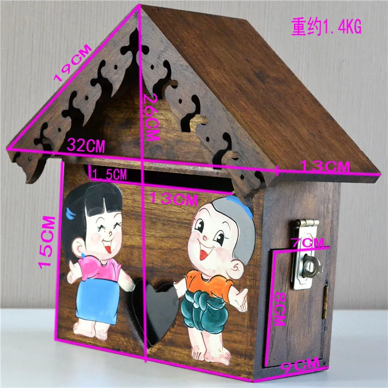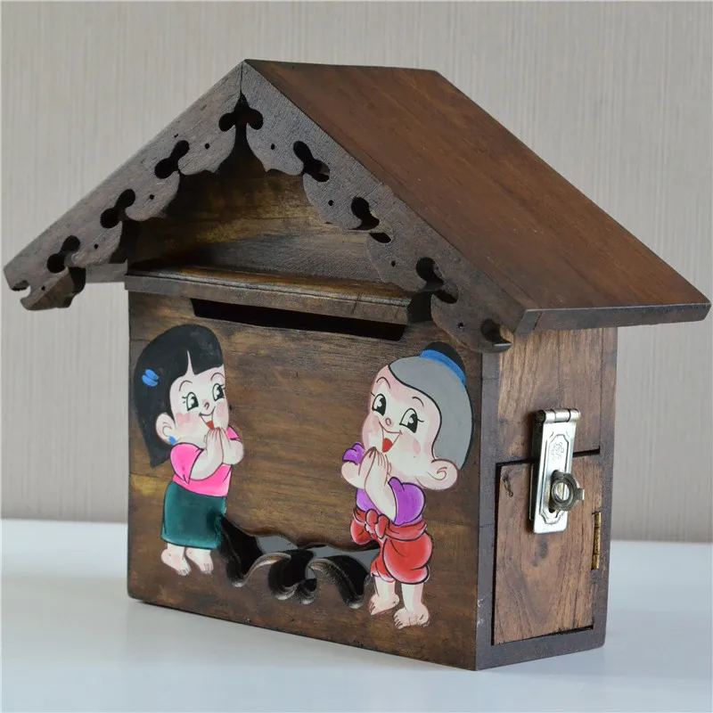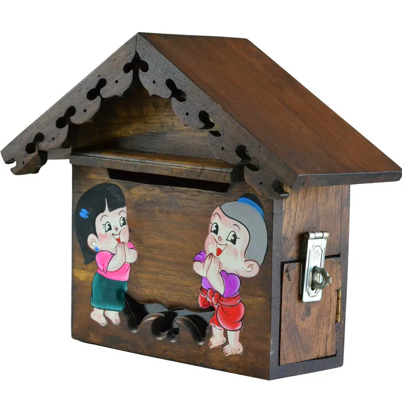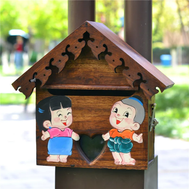 "Solid Wood Handmade and Hand-Painted Cute Character Small Mailbox Electricity Bill Suggestion Box Gardening Outdoor Mailbox" * Buy Now Just For 81$