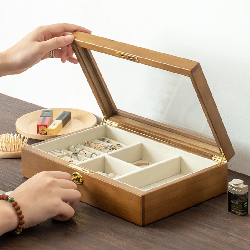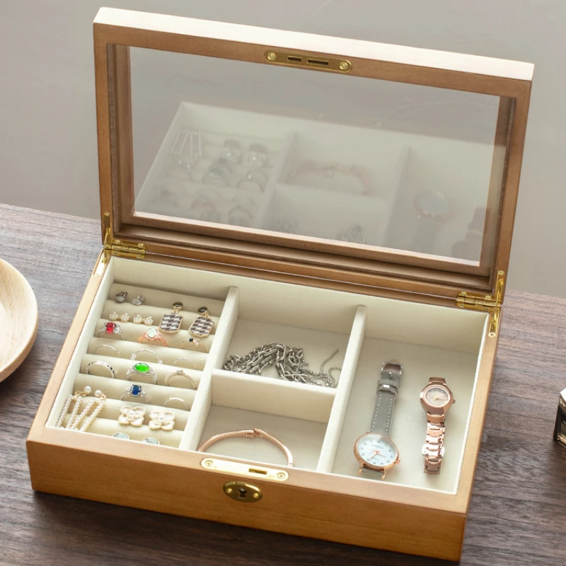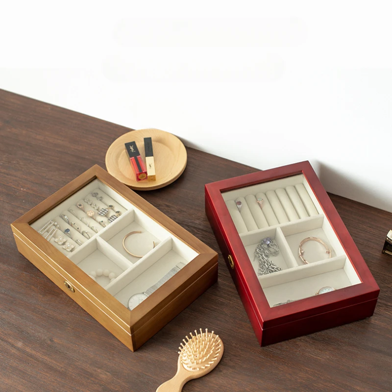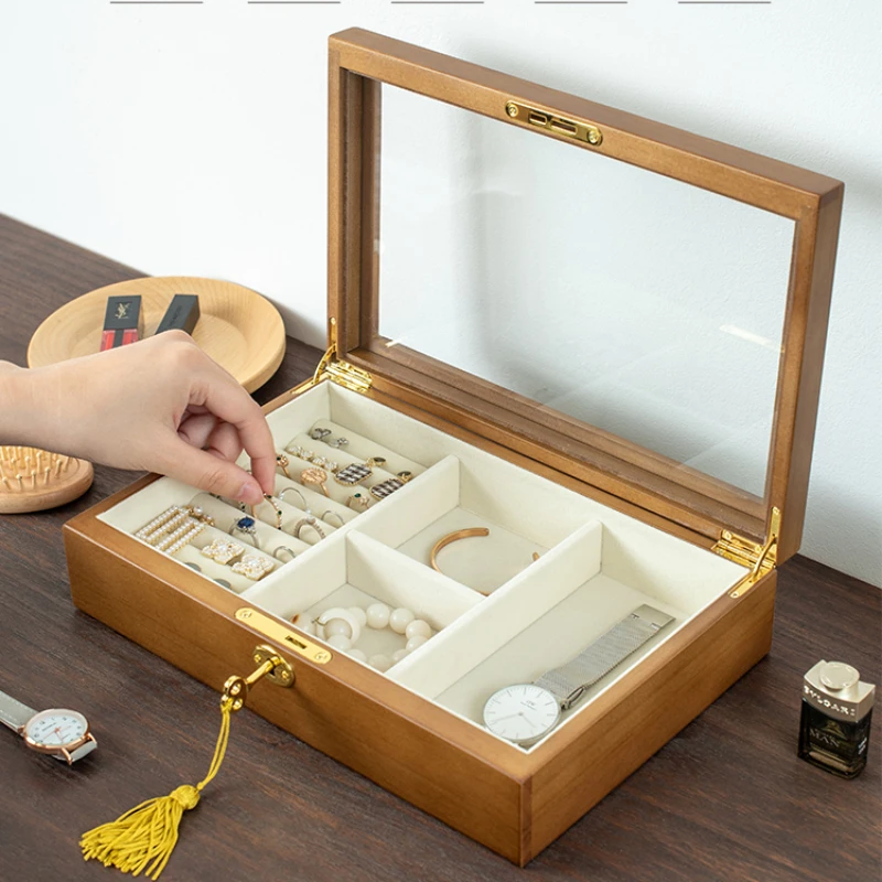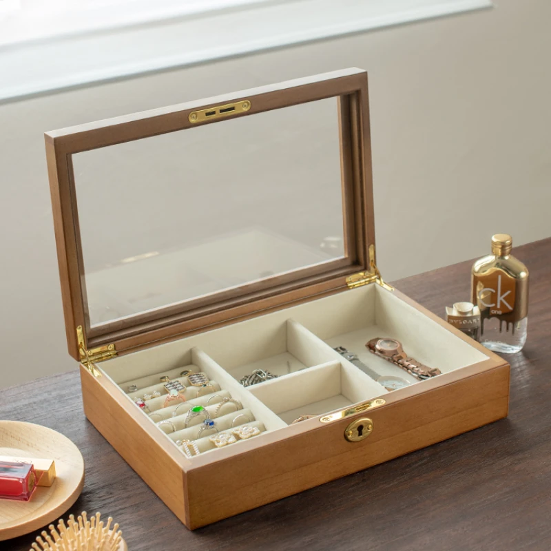 DkpSOJtnAHere you can buy Solid Wood Jewelry Box High Grade with Lock Storage Boxes High Transparent Glass Organizer Box Flannel Lining Jewelry Storage with free delivery to your post office.
