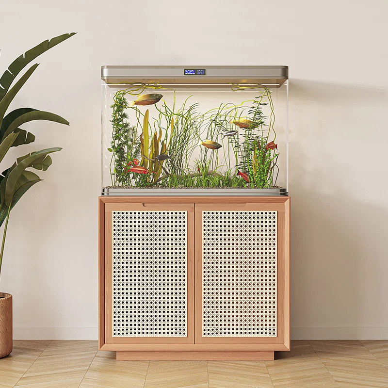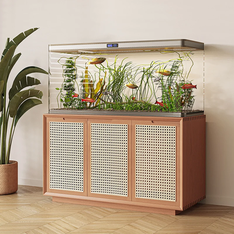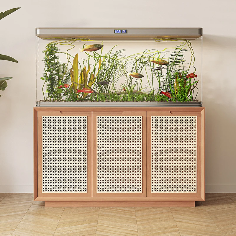 Solid Wood Rattan Living Room Aquarium Base Cabinet Aquarium Base Storage Customization Office Company Fish Tank Table Shelf - Купить с бесплатной доставкой