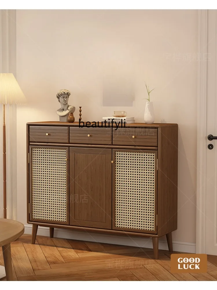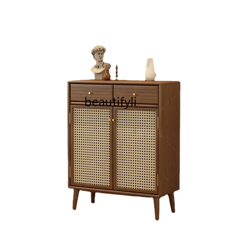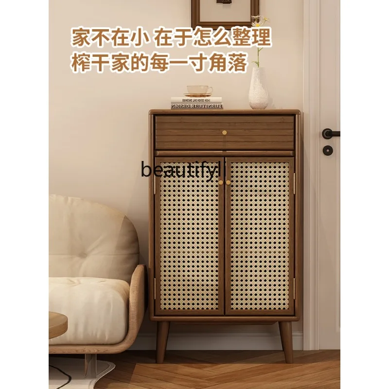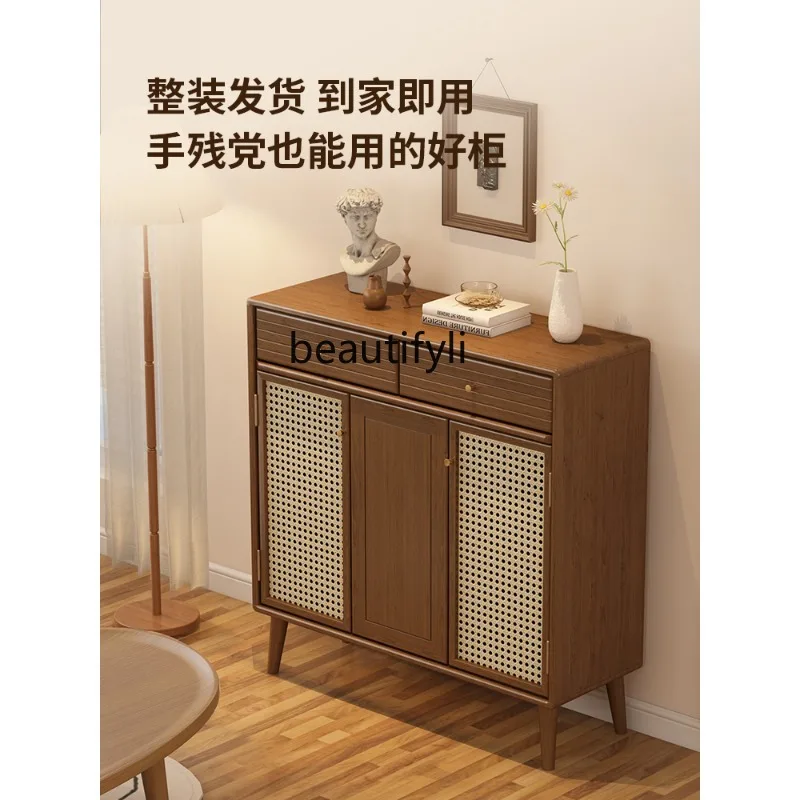 Solid Wood Shoe Cabinet Doorway Rattan Breathable Small Apartment Multi-Functional Hallway Storage Cabinet Installation-Free - Купить с бесплатной доставкой