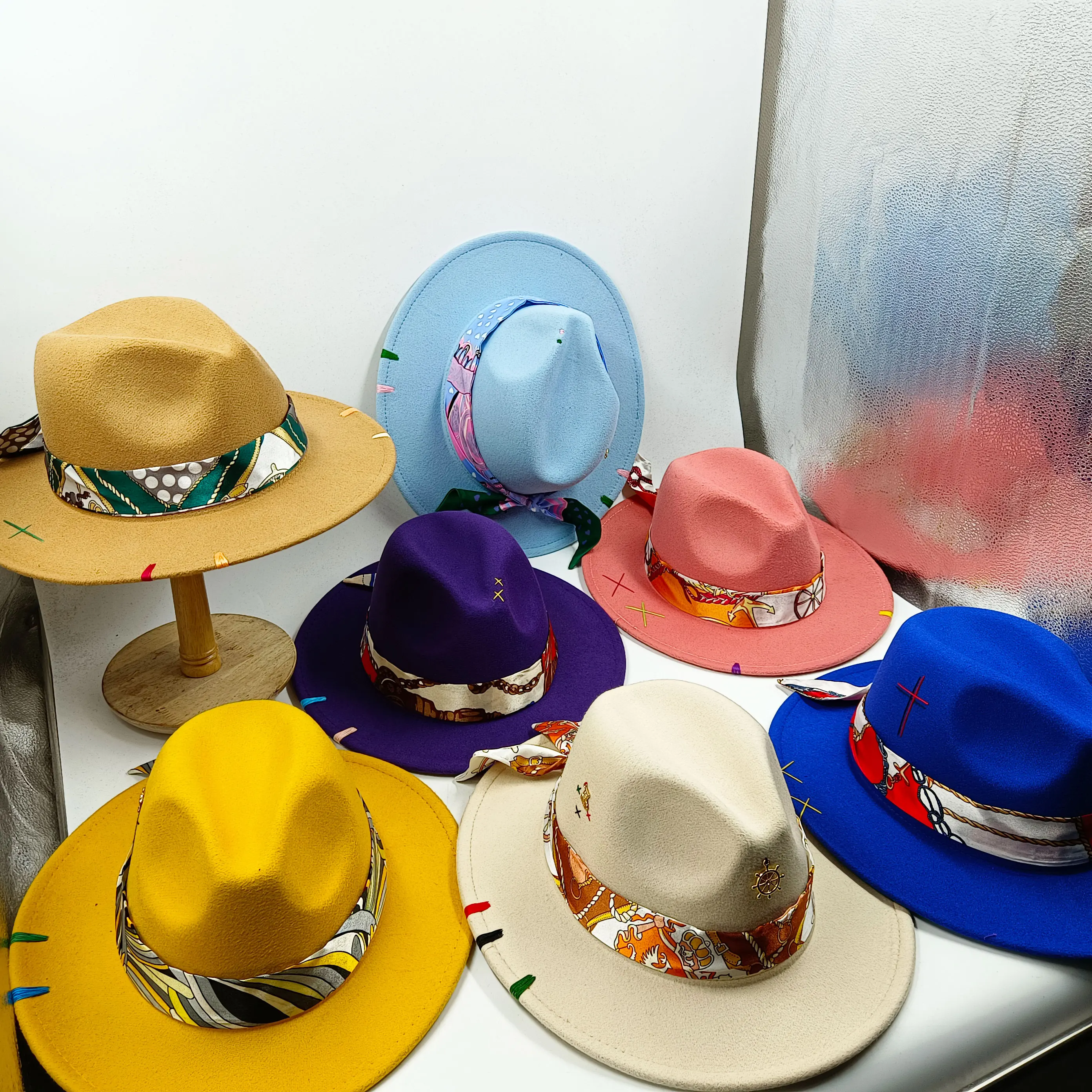 «Solid color hand-stitched Fedora hat irregular new color stitching adjustable unisex hat fedora felt hat jazz autumn winter hat» по лучшей цене на рынке! Всего за 9$ (855рублей)