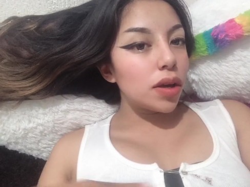 Young Latina spreading her legs and masturbating with a sex toy