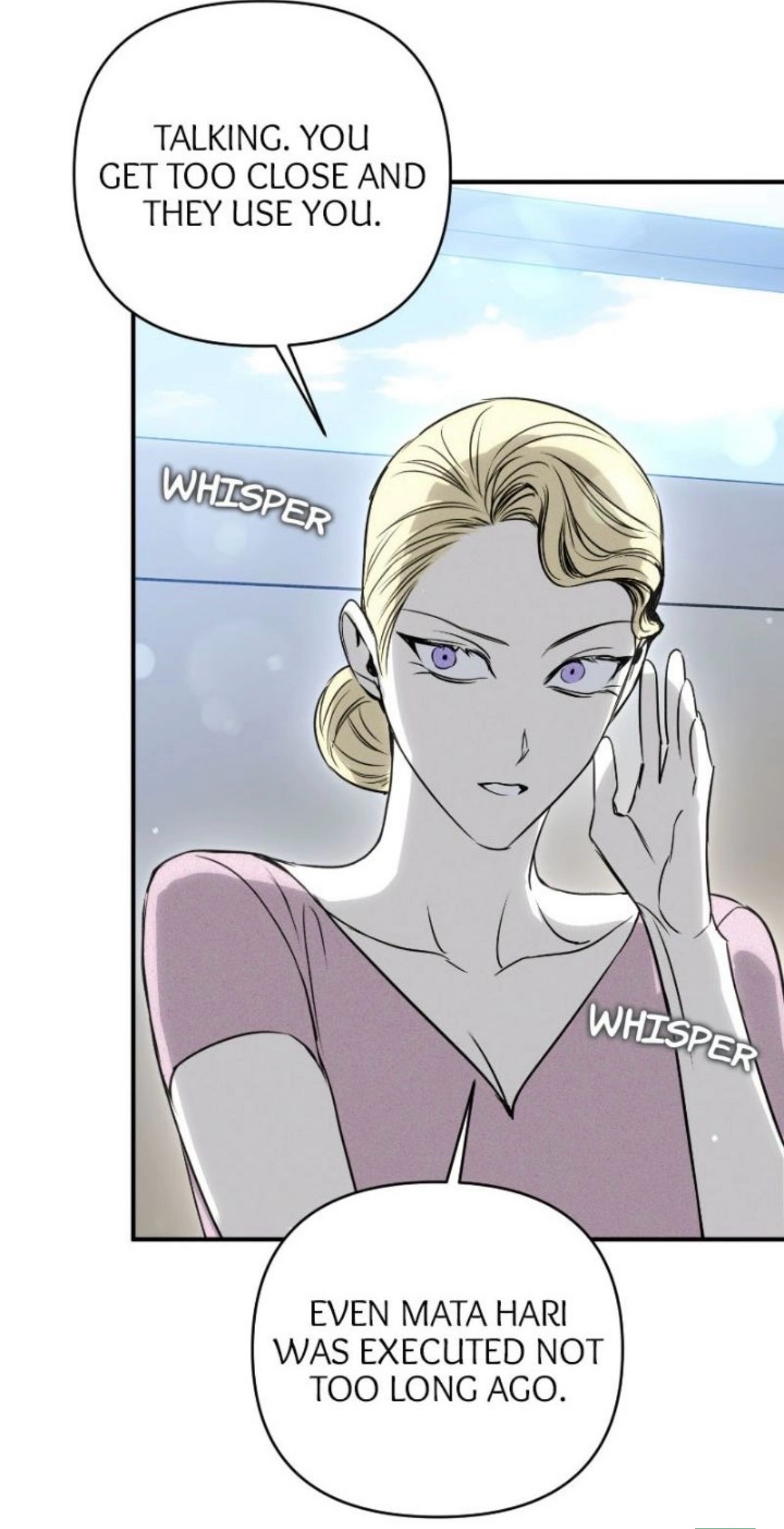 — Разговоры. Вы слишком сблизились, и они могут тебя использовать. Даже Мата Хари была казнена не так давно.