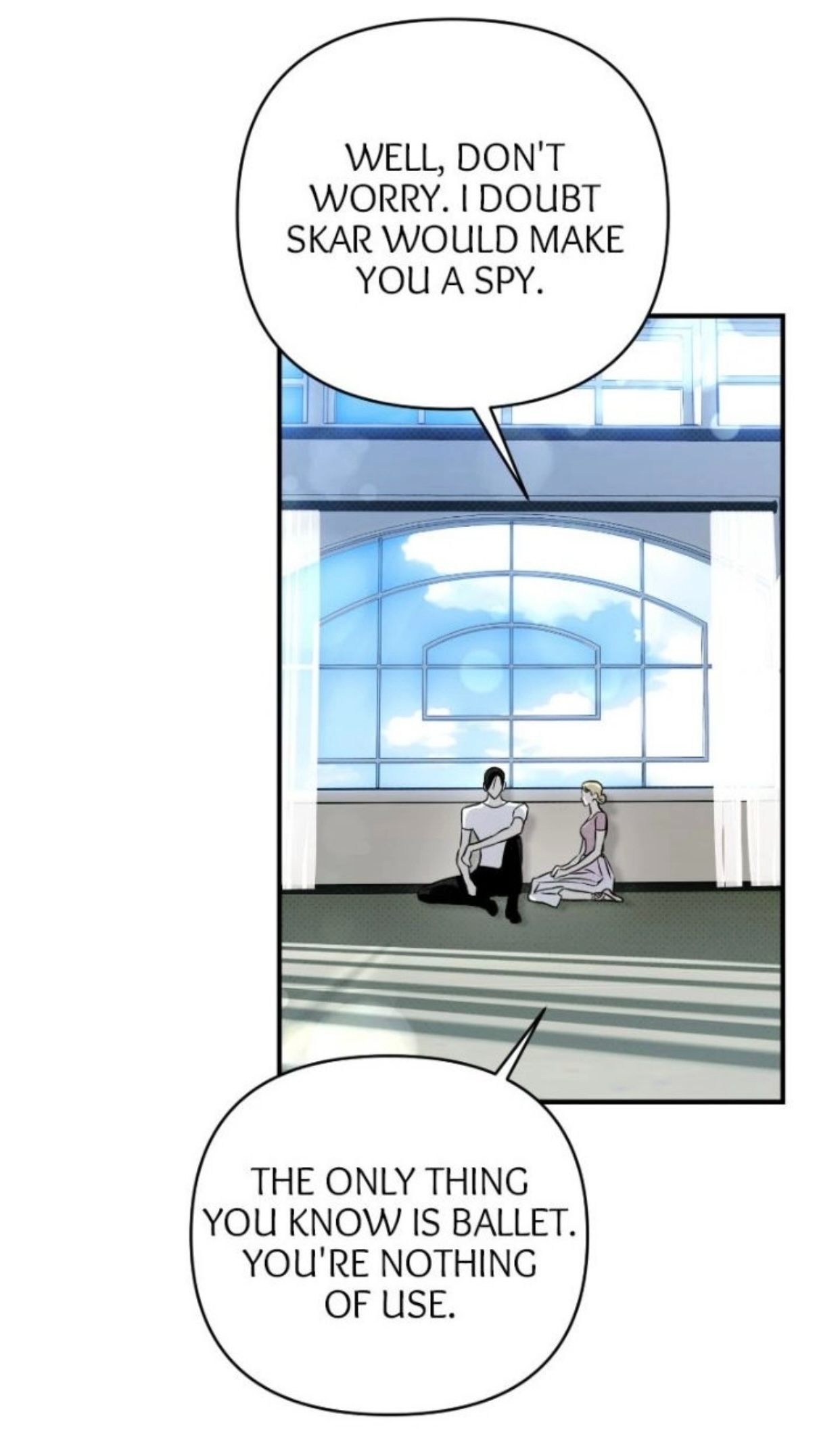 — Ну, не волнуйся. Я сомневаюсь, что Скар захочет сделать из тебя шпиона. Единственное, что ты умеешь, это заниматься балетом. В остальном ты бесполезен.
