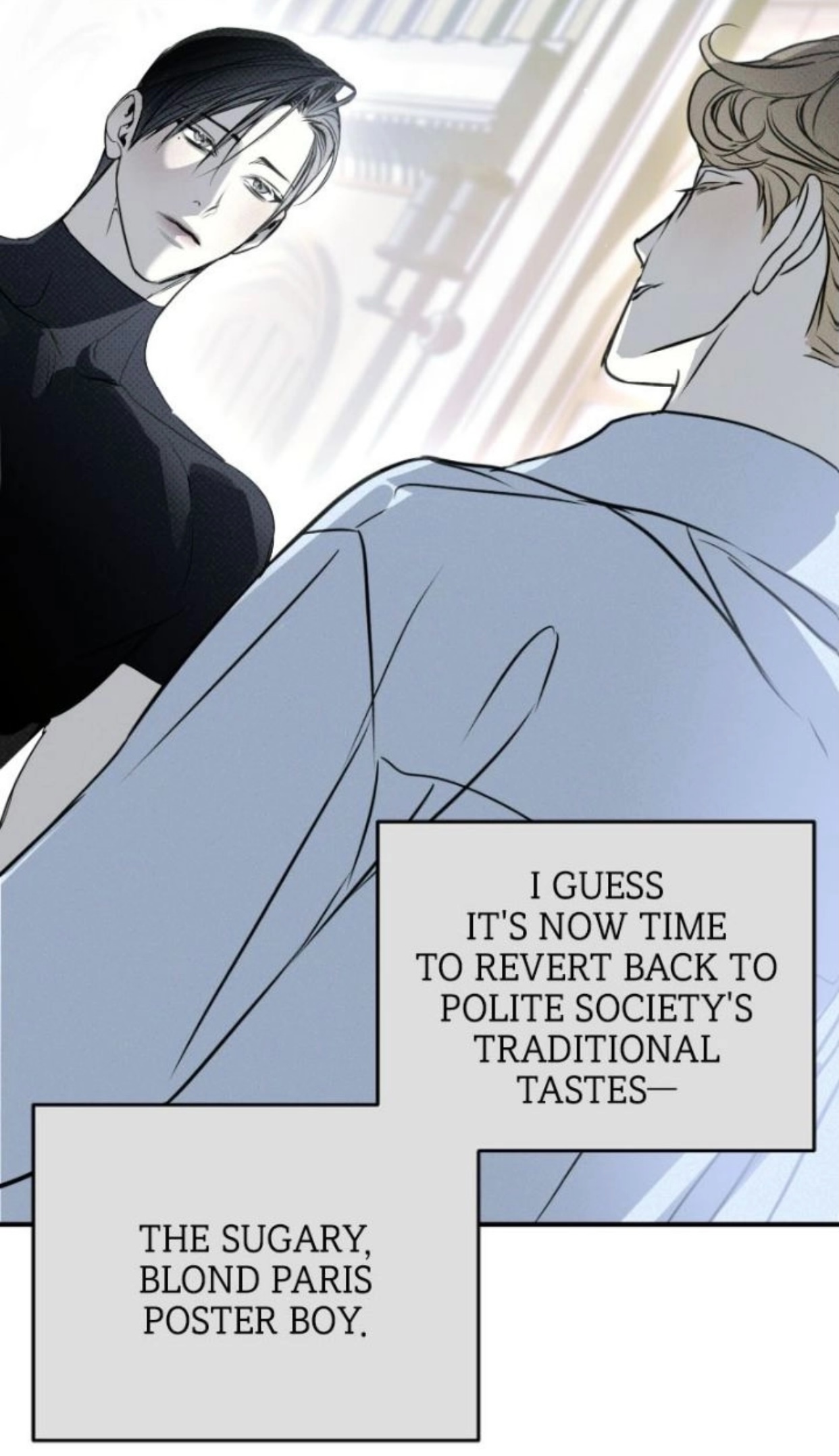 / Я думаю, что теперь пришло время вернуться к традиционным вкусам воспитанного общества - слащавый блондин с парижских постеров./