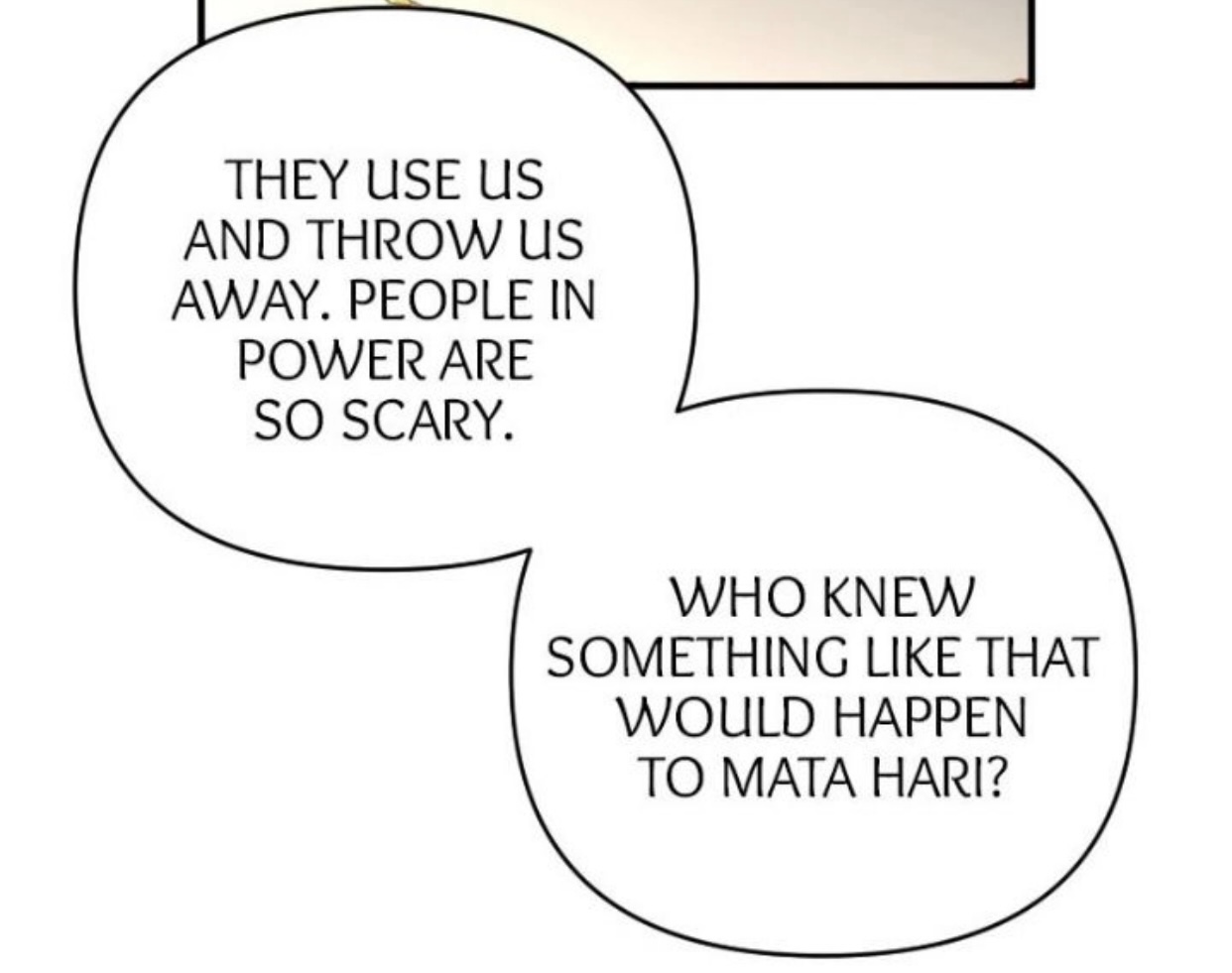 — Они используют нас и выбрасывают. Люди, обладающие властью, очень страшные. Кто мог знать, что с Мата Хари произойдет нечто подобное?