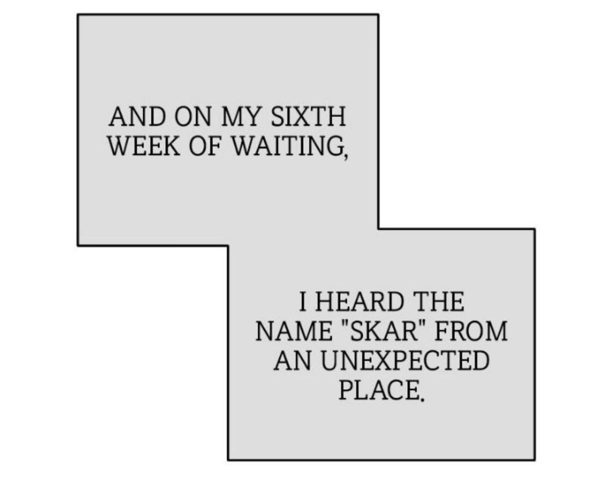 / И на шестую неделю моего ожидания, я услышал фамилию Скара из совсем неожиданного места.
