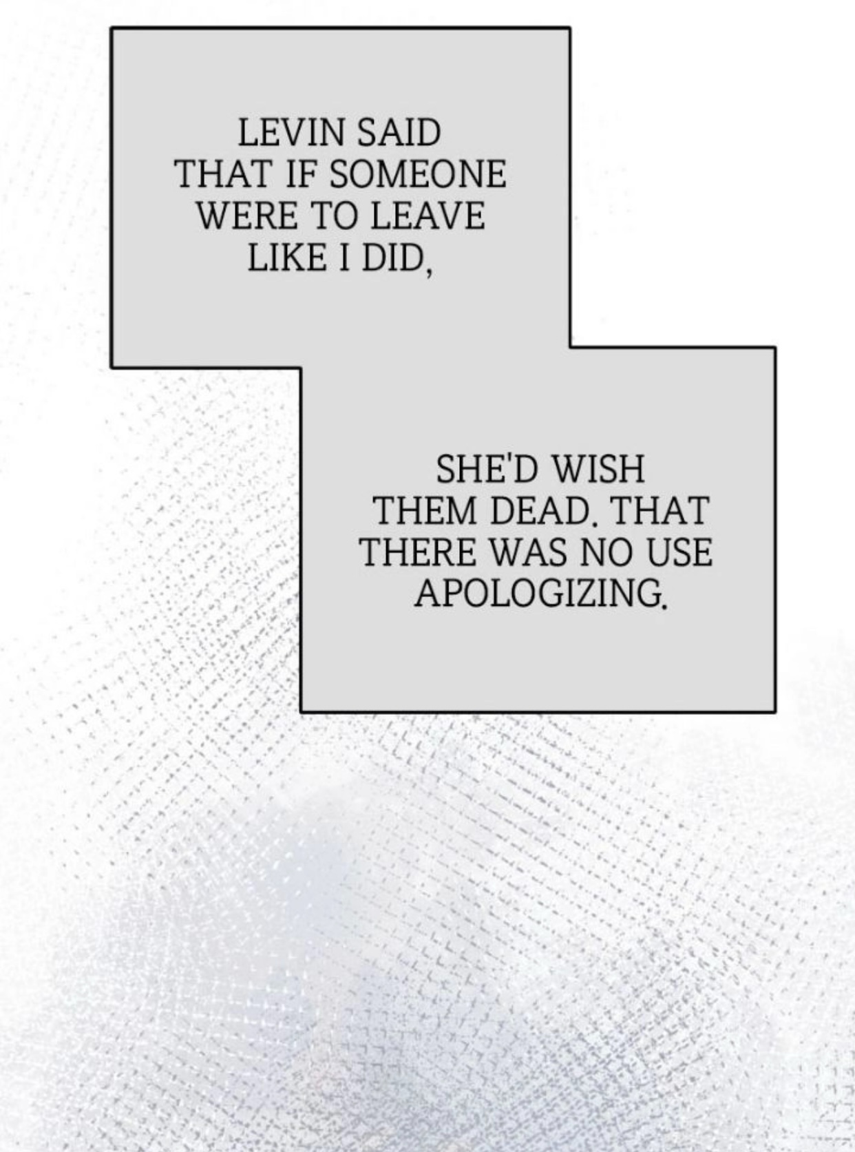 / Левин говорила, что если бы кто-то ушел так, как я, то она пожелала бы ему умереть, без права на извинения./