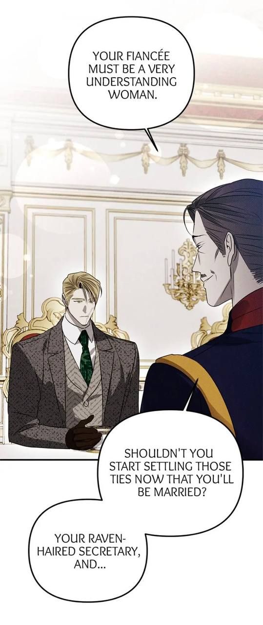 — Твоя невеста, должно быть, очень понимающая женщина. Разве ты не должен уладить все свои отношения, когда уже почти женат? Твой черноволосый секретарь и ...