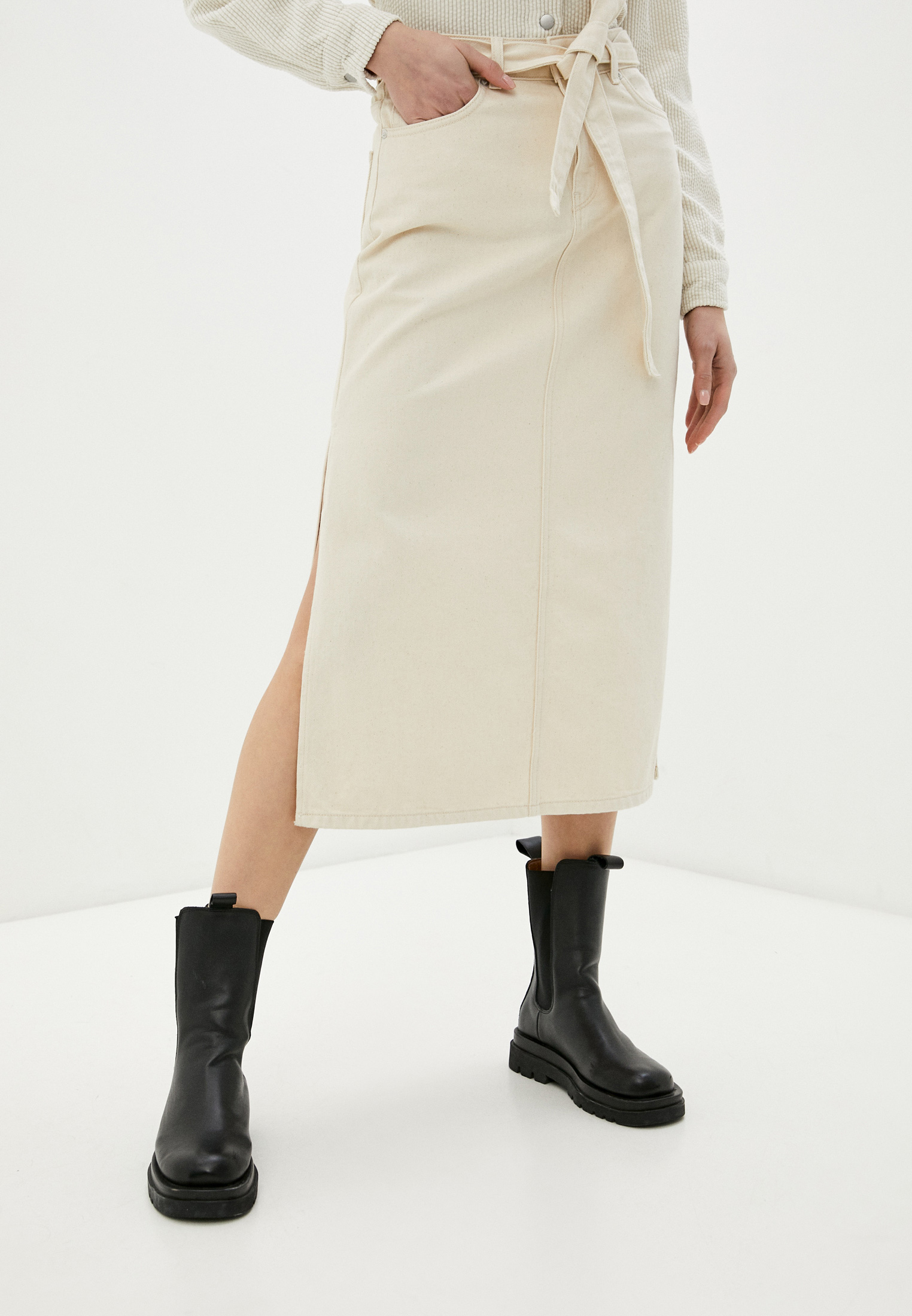 Langhaarige Blondine in Schuhen kackt einen großen Haufen Höschen