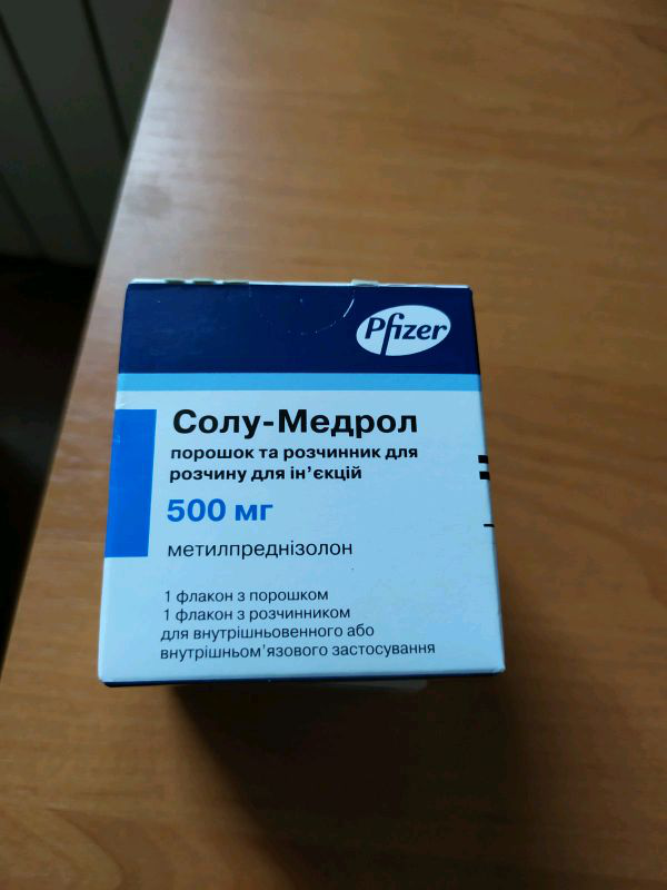 СОЛУ-МЕДРОЛ Порошок ліофілізований для приготування розчину для ін'єкцій по 1000 мг у флаконах №1 у комплекті з розчинником по 15,6 мл у флаконах №1 у картонній коробці Пфайзер Менюфекчуринг Бельгія Н .В ., Бельгія 1 флакон містить: метилпреднізолону у вигляді натрію сукцинату . . .