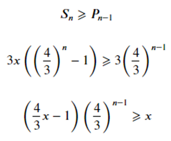Приведённое неравенство имеет решение для некоторого n > 0 тогда и только тогда, когда коэффициент при экспоненте более нуля, то есть при x > ¾.