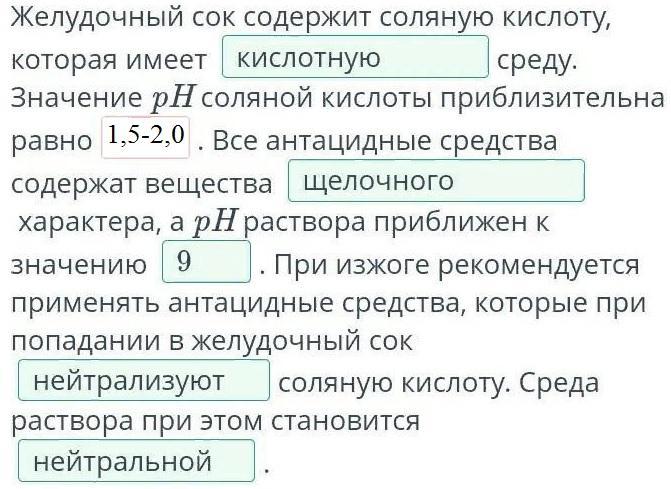Соляная кислота содержится в соке