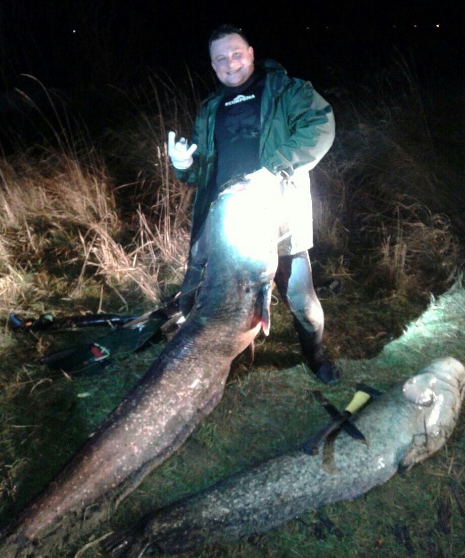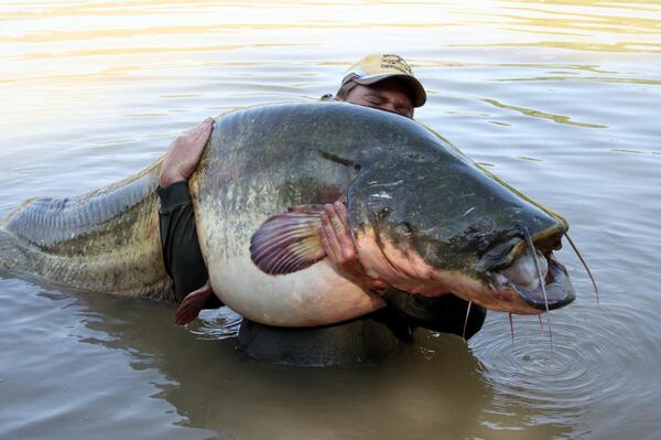 Сом охотится