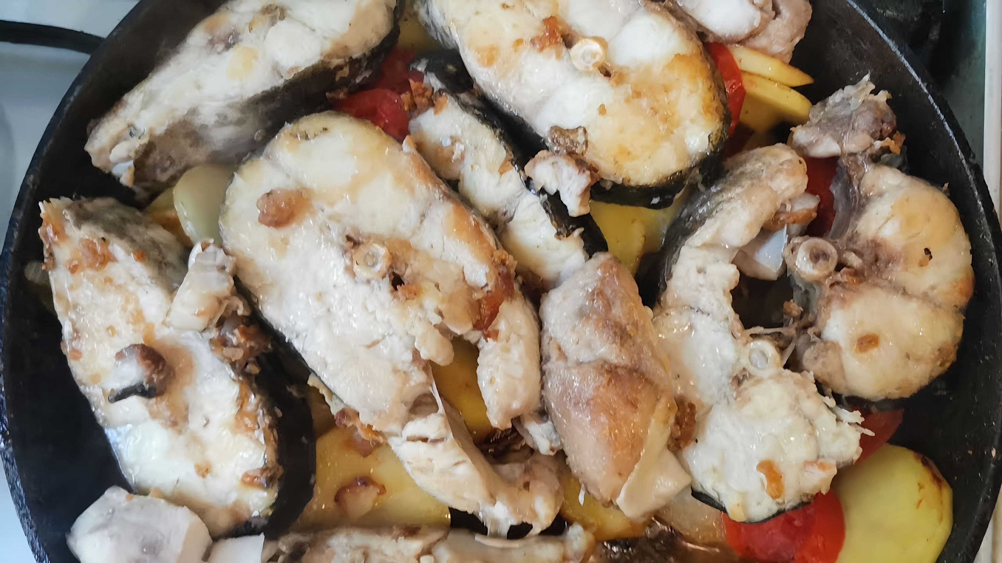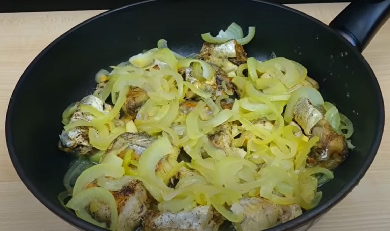 Сом с луком на сковороде