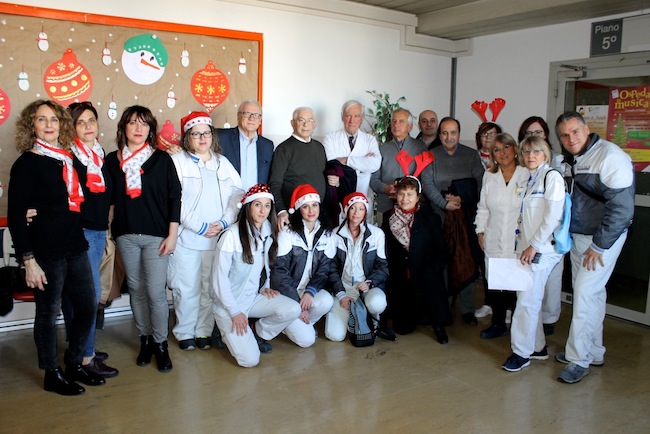 ANCONA - Dal mare sono arrivati i Babbi Natale nel porto di Ancona di fronte alla portella Santa Maria, per una staffetta simbolica fra mare e terra nel segno della solidarietà espressa da tutta la comunità portuale in questa manifestazione creata dalle associazioni Amici del porto antico e Stella Maris, insieme a Comune di Ancona, Capitaneria di porto di Ancona e Autorità di Sistema portuale del mare Adriatico centrale .