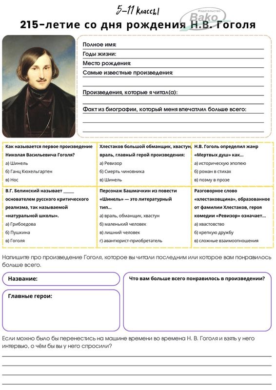 Сообщение 215 лет со дня рождения гоголя