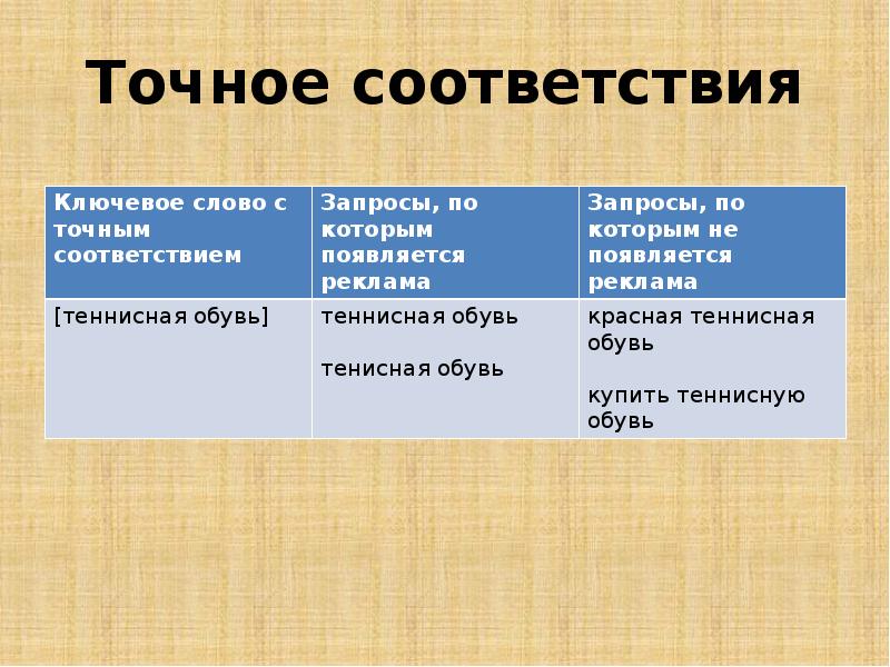 Соответствие запросу пользователя