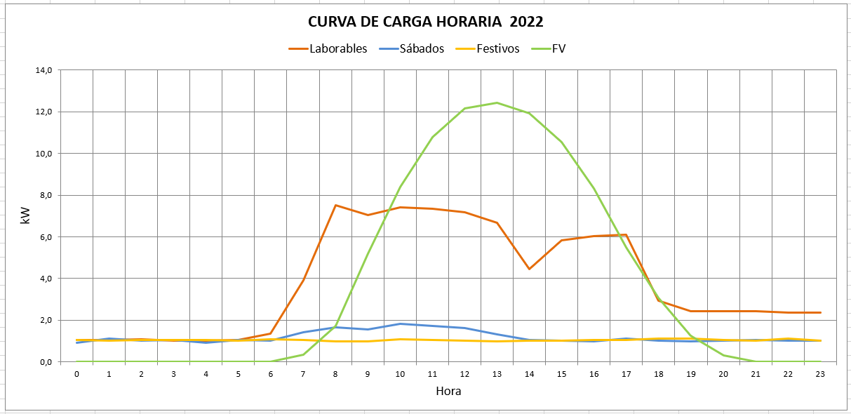 ▫️ Curva de carga horaria (laborables, sábados y festivos)