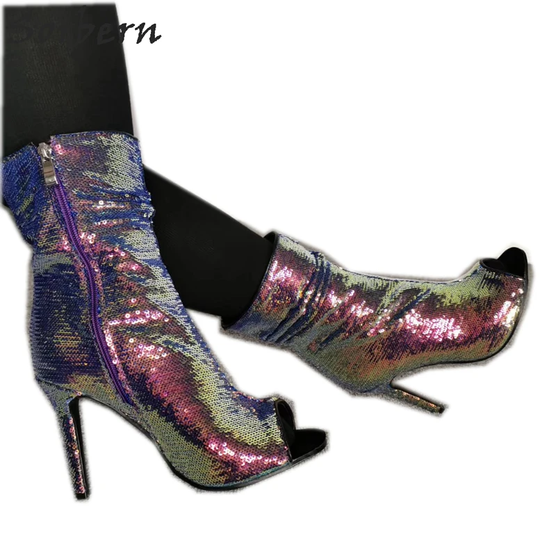 "Sorbern Colored Sequins Ankle Boots For Women Stilettos Open Toe High Heel Short Booties Spring 2020 New Size 11 Women Shoes" * Buy Now Just For 90$