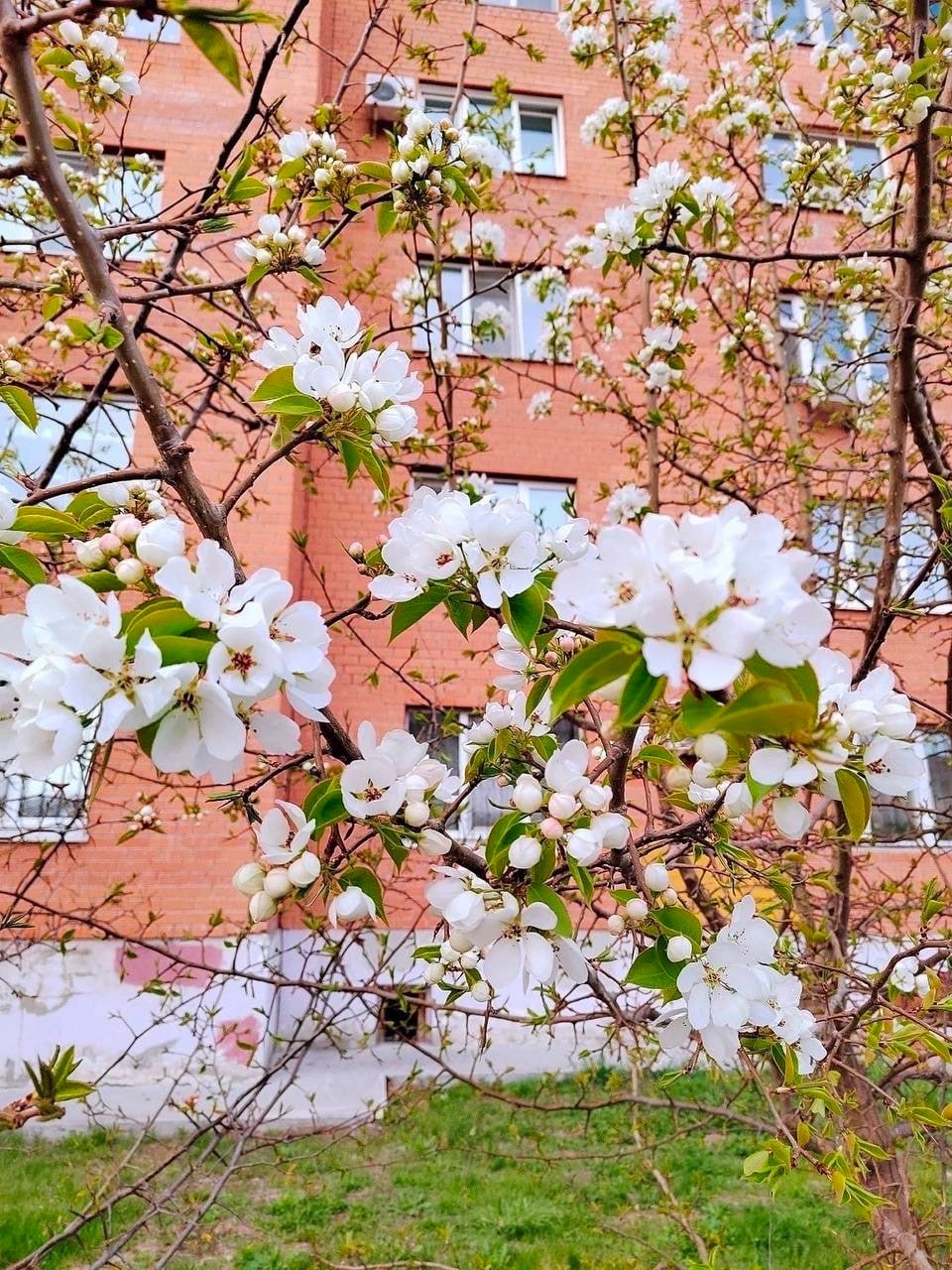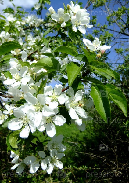 Сорока яблоня цветет