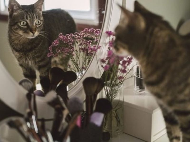 В основном животное не понимает, что существо в зеркале – это оно само. Многие просто заглядывают за зеркало и удивляются, что там никого нет. Даже если они не ищут другое животное за зеркалом, очевидно, что они не узнают себя в отражении, потому что не пытаются убрать пятно с изображения. Исследователи убедились, что большинство сорок узнали себя в зеркале и попытались убрать с тела отметку, глядя в зеркало.